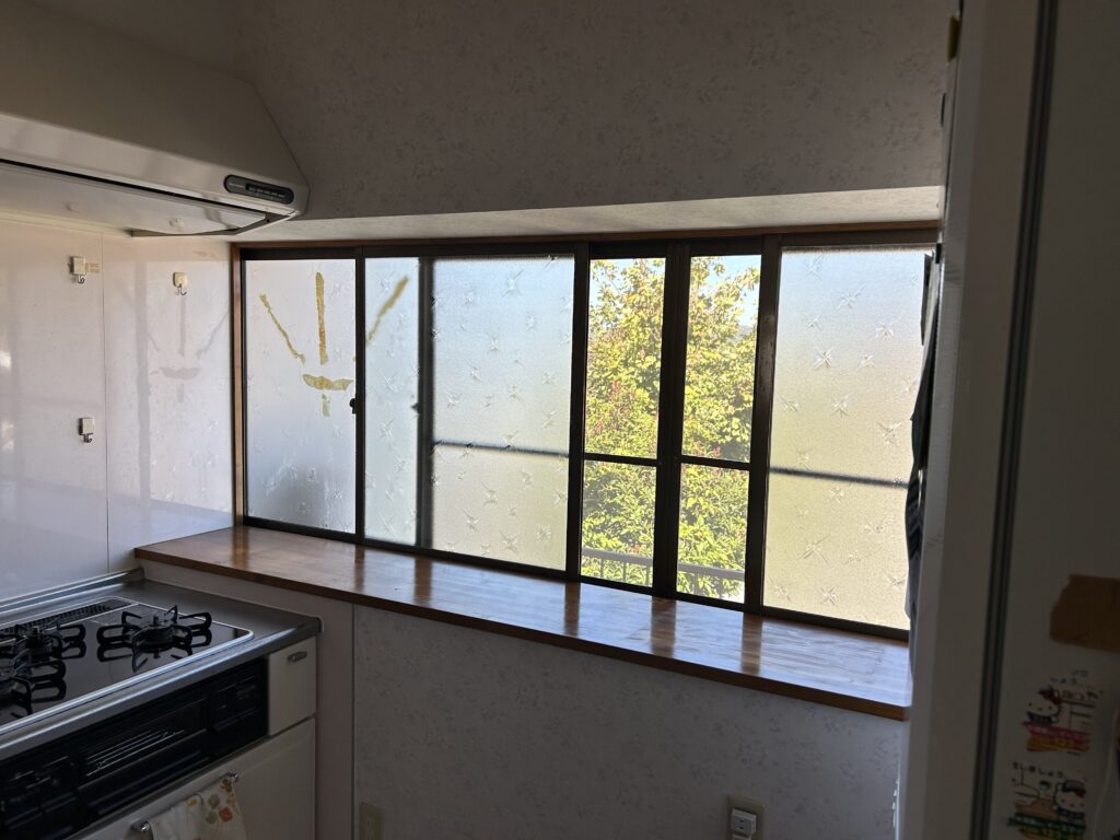 居間と台所北面には開口が大きい1枚ガラス仕様の窓が設置されていたため、冬は特に寒く感じます。