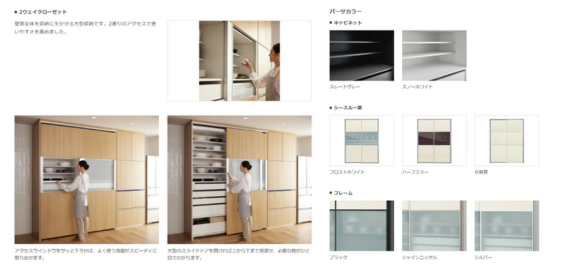 収納力も抜群で、食器や調理器具はもちろん、食品や家電製品まで、さまざまなものをすっきり収納できます。また、2ウェイクローゼットやコーナークローゼットなど、使いやすさを追求した工夫が凝らされているのも特徴です。