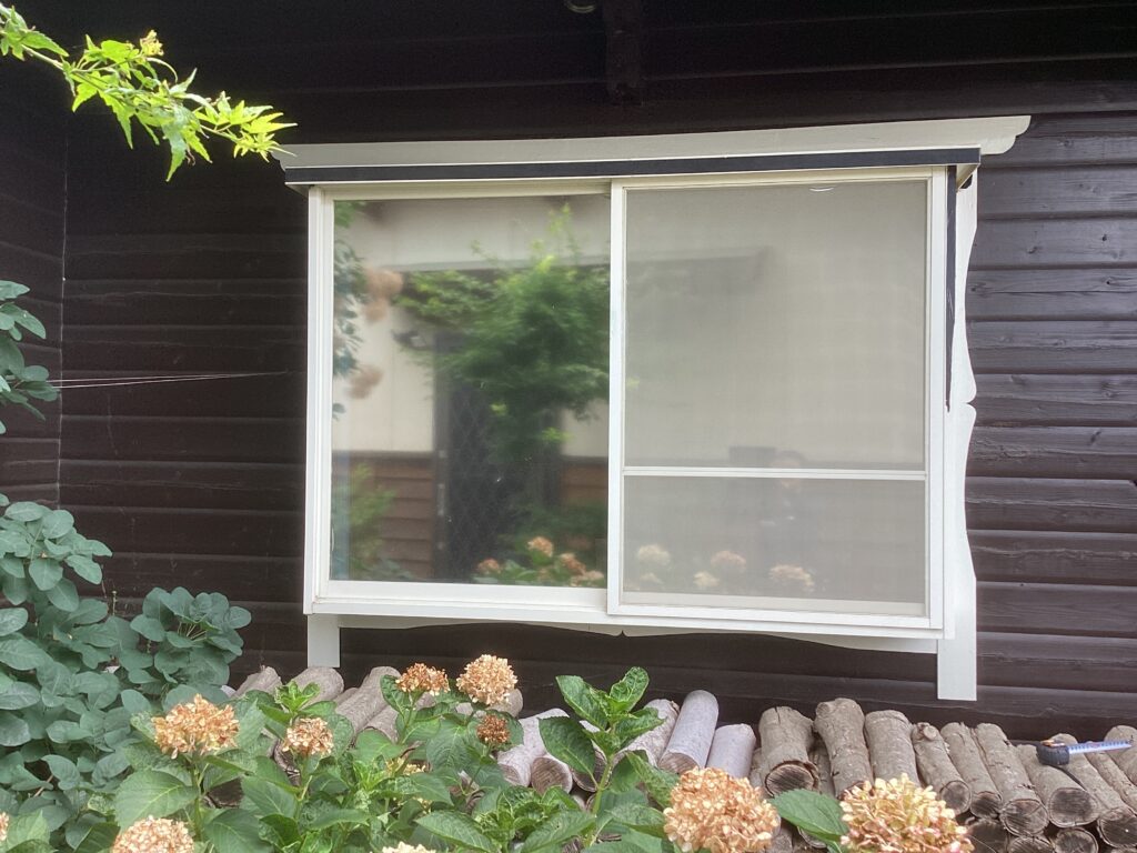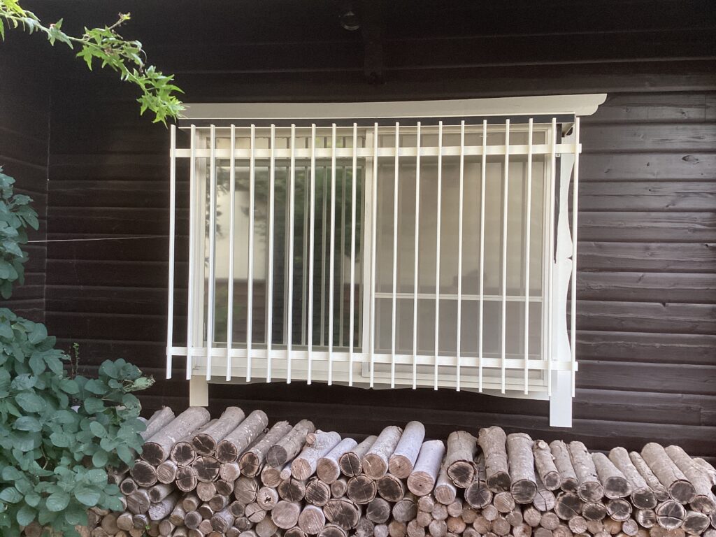西面の出窓には面格子取り付けを行い防犯、台風対策を行いました。